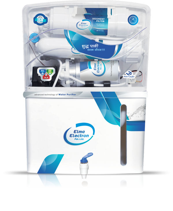 ‘Elma’ RO purification technology provides purification by RO combined with Cartridge micron filter + Inline sediment + Carbon Cartridges + RO Membrane + UV sterilization process. The carbon and sediment filters remove both suspended impurities such as a few chemicals and various organic impurities including rust particles & chlorine. The RO Membrane removes even dissolved impurities (heavy metals) as well as harmful micro-organisms (bacteria, viruses, etc.) and the RO System purifies all kinds of water and converts water to pure, sweet, and healthy drinking water. Along with a Mineral Cartridge, it also incorporates a UV sterilization process to give double protection from harmful micro-organisms, and Alkaline can also control pH Levels and Minerals with Minerals Tuner which are essential for the human body.